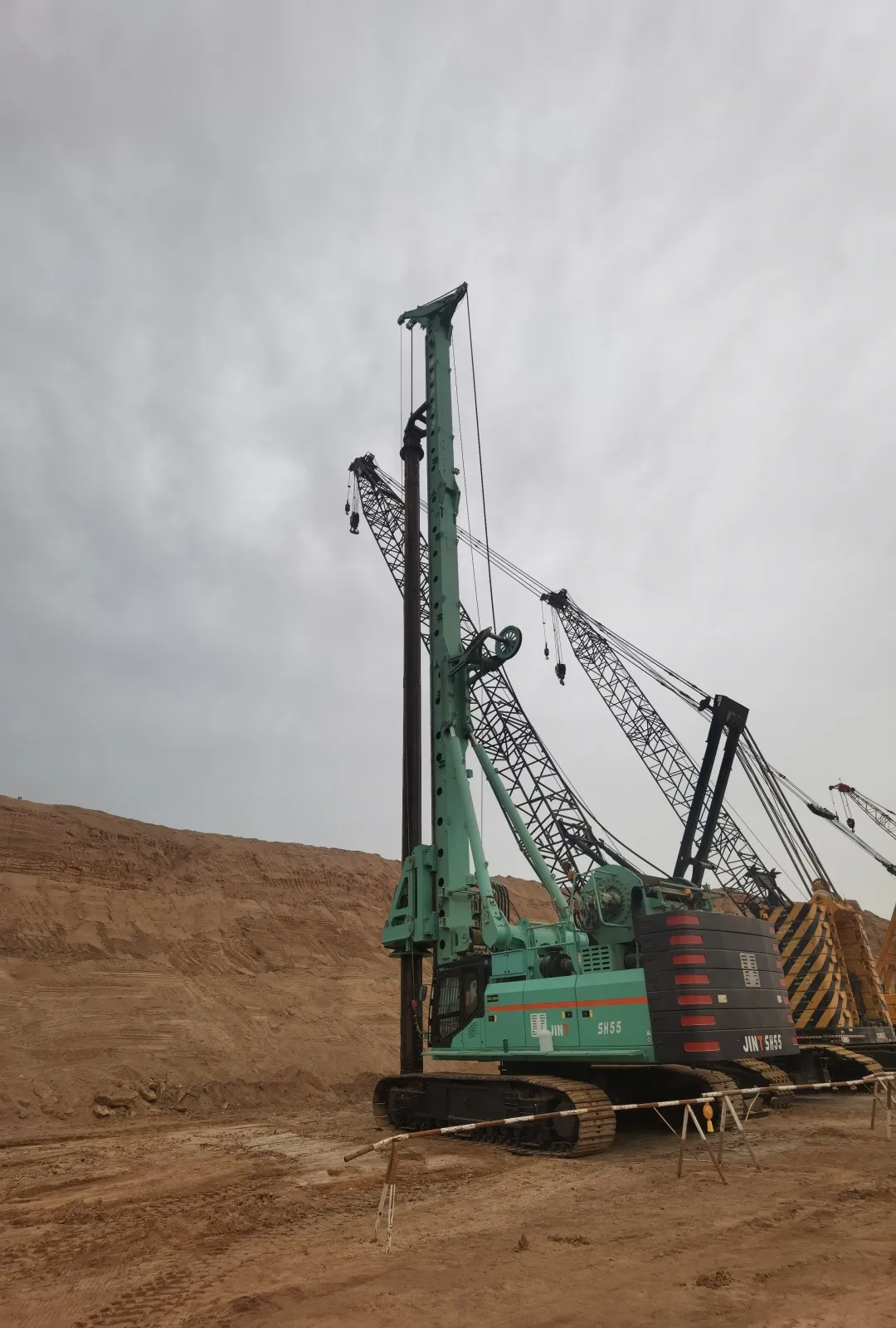 自2025开年以来,中国水电基础局与上海金泰紧密携手的高质量标杆项目频出,上海金泰10多台旋挖钻机又于中东区域沙特NEOM新城桩基项目M48区域成功创造中东地区基建新标杆——金泰SH55旋挖钻机完成中东区域目前最大最深桩基106.16米施工,以卓越技术与高效协作,为全球基建领域贡献又一典范之作。
